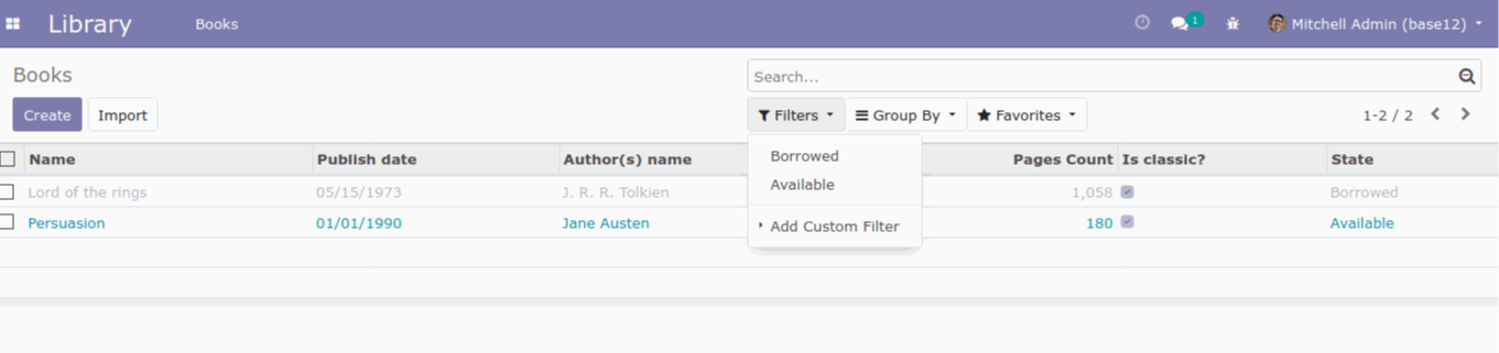 Al presionar sobre el filtro Borrowed, automáticamente se mostrarán sólo aquellos libros que están en estado Borrowed, pues el filtro se aplica sobre el valor del campo state.