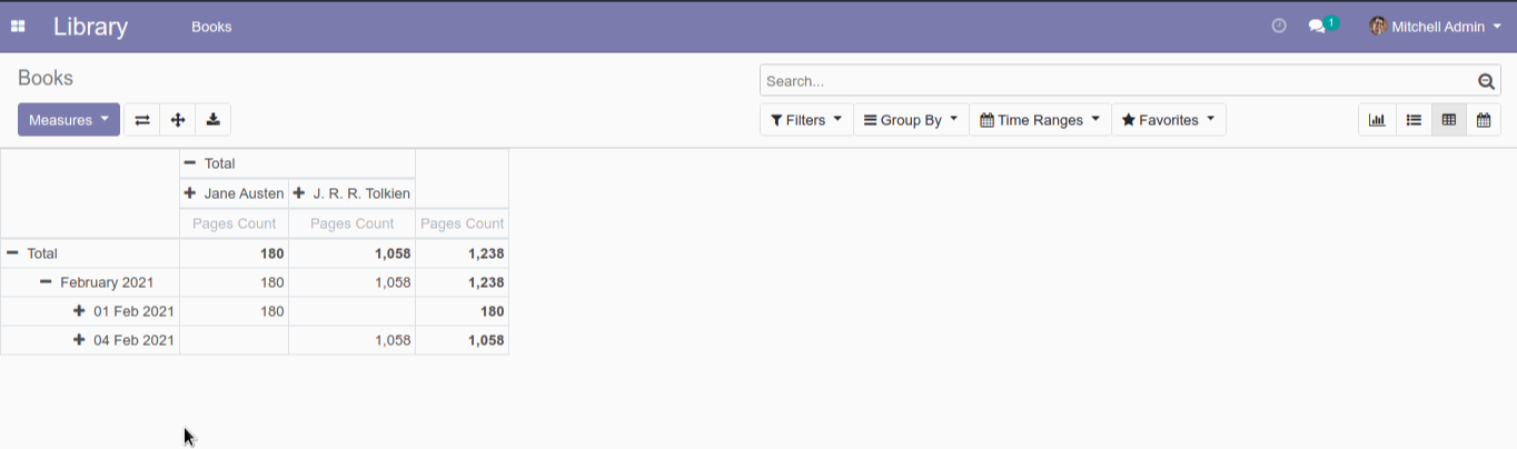 Nuevamente procedemos a actualizar nuestro action para que también muestre nuestra vista pivot como opción en la esquina superior derecha.